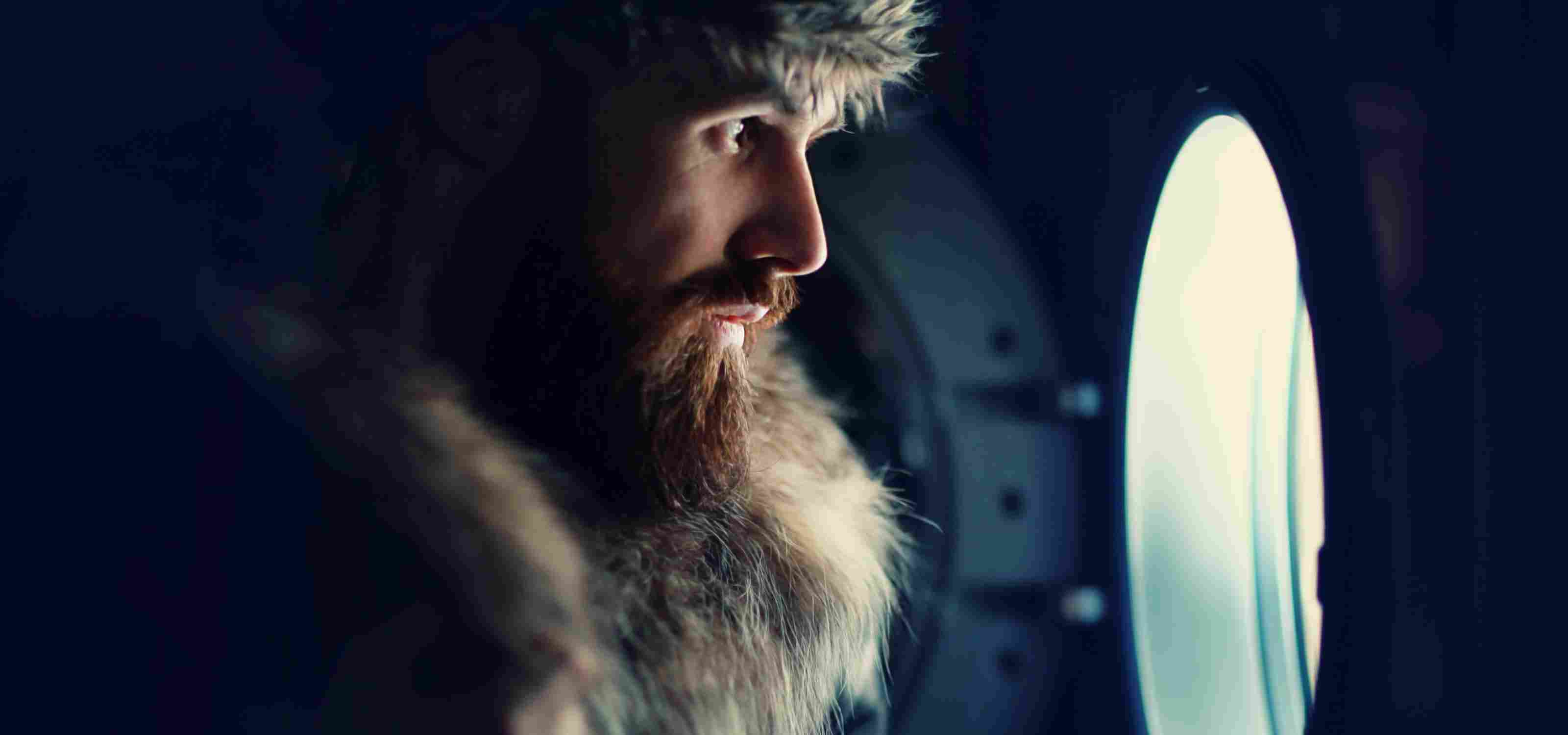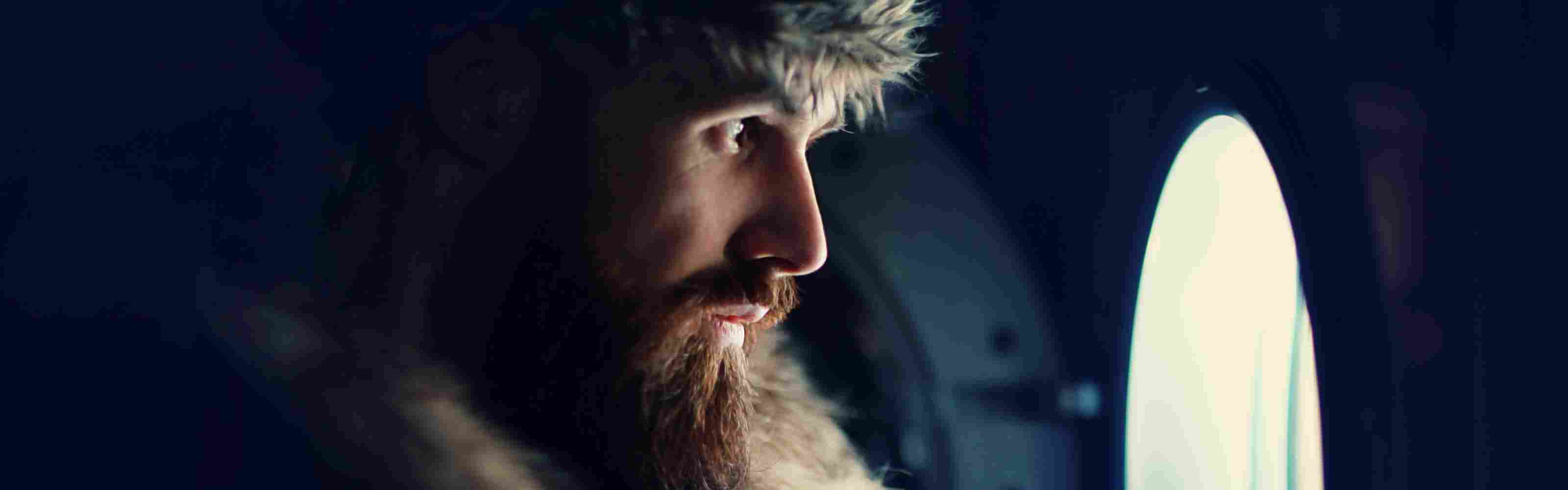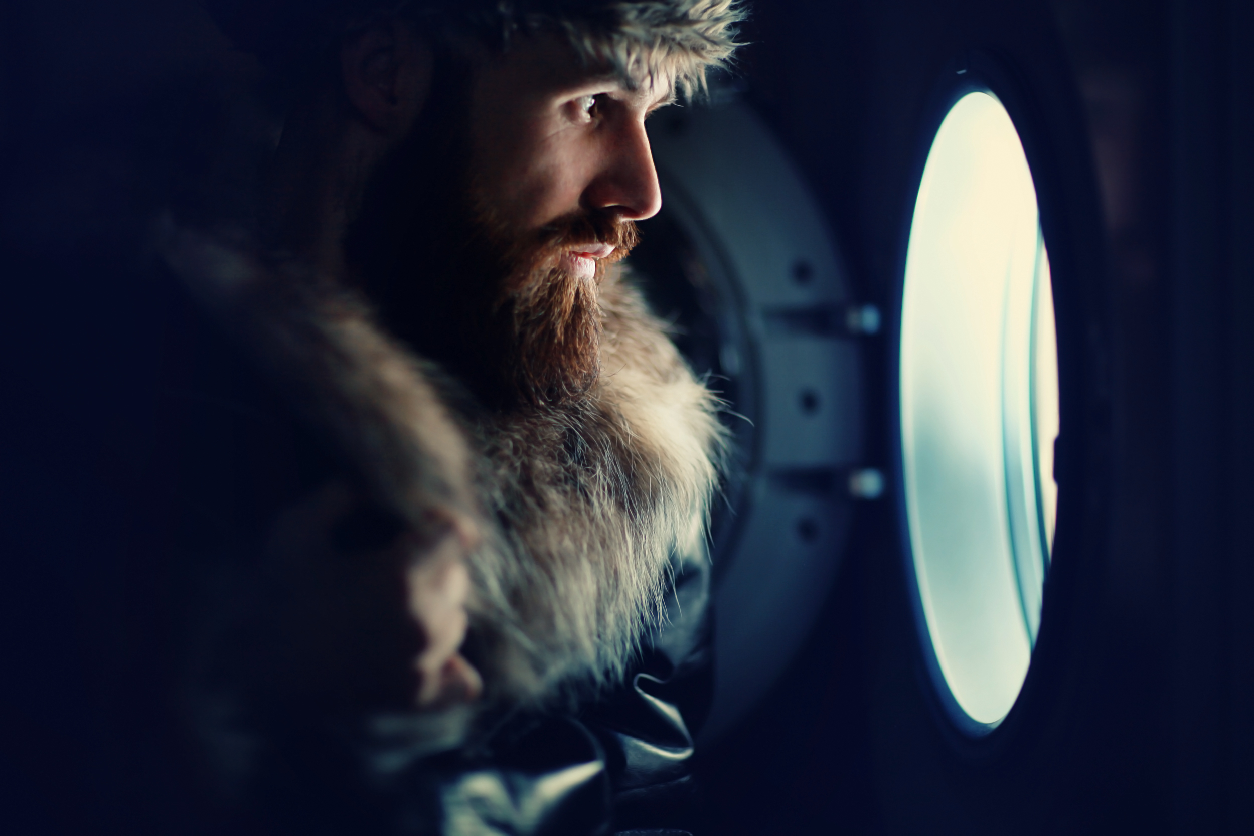 man looking through a porthole of a ship